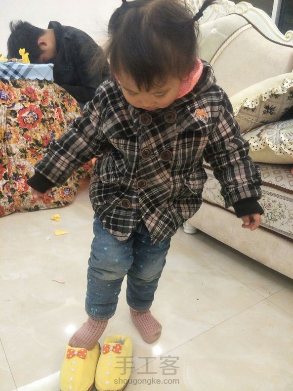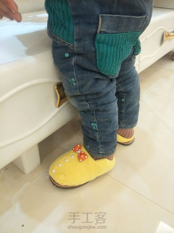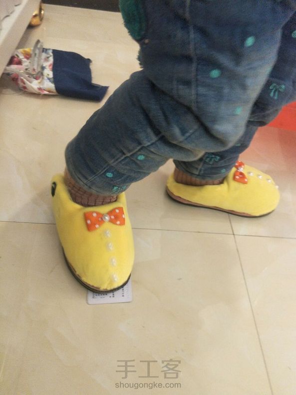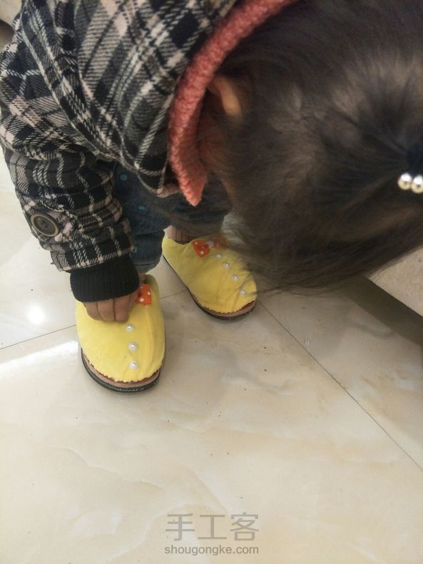 接近丢弃的旧棉鞋, 翻新改造成拖鞋后跟新的一样! 一针一线缝制的, 小宝贝也很乐意穿! 💡是不是两全其美呢~😃