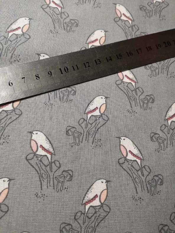 灰底小鸟平纹纯棉外贸布 宽幅110厘米,100%纯棉,平纹,适合拼布、包包、衣服或其他DIY。 拍一份为半米,多拍不裁开。
