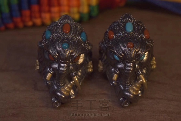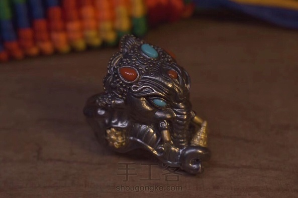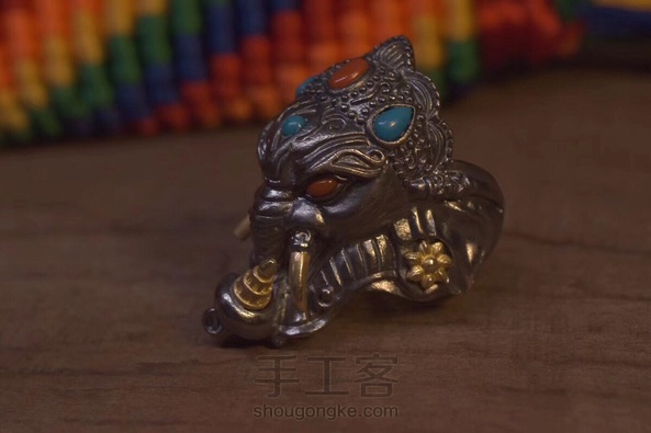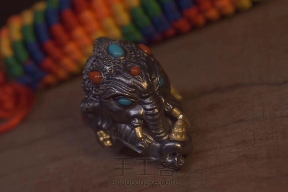 银の道【招财象鼻财神戒指】 象头神迦尼萨Ganesha是湿婆神(Shiva)与雪山女神(Parvati)之子,在古老的印度,人们进行任何活动前均先礼拜象头神迦尼萨,因为他是创生和破除障碍之神,他也协助信众接近其他的神祇,世人相信迦尼萨带来成功和幸福。印度教在举行仪式之前、结婚、朝圣前、出远门、拜师开学、开店都会敬拜迦尼萨,诗人也从他那里得到灵感。因此象神被世人誉为“守护神”。 材质:s925银 铜 做旧 尺寸:403225mm重量:25g镶嵌绿松石,南红,镶嵌工艺达到了目前国内最高水平!戒指活口,可以调节,大家都可以佩戴,吊坠可搭配皮绳,银链!一直受大家喜欢的一款题材,招财,智慧,消灾,功德,转运!又一爆款力作!