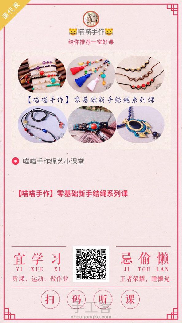 喵喵手作零基础新手结绳系列课已经上线,限时只要7.8哦!