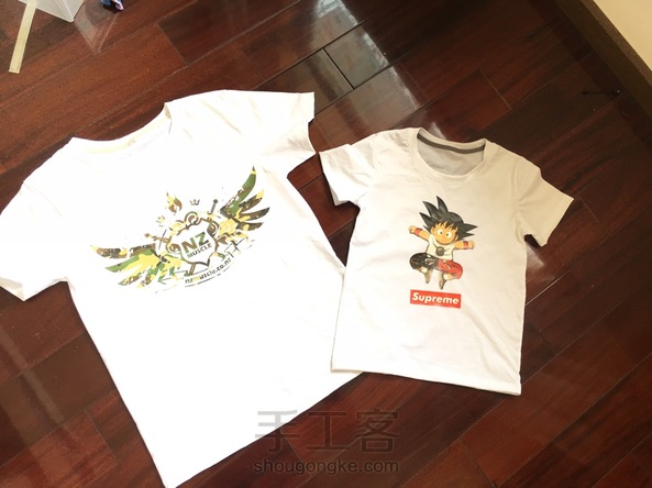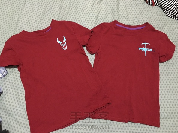 白色奥戴尔短袖,红色汗布短袖,烫画都是娃自己挑的动漫游戏人物,毒液和吃鸡烫画是夜光的,超酷