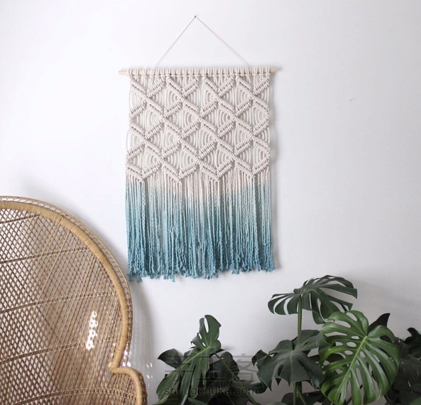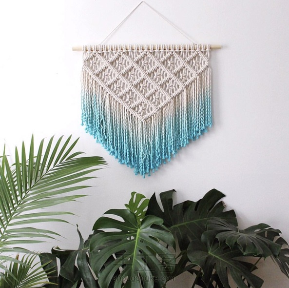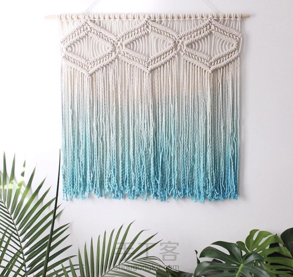 蓝色小清新的染色挂毯,是夏天的颜色。 挂在家里每天看着都会有好心情~