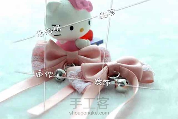 同色系的,第一二张是听说加了小铃铛就会是森系的粉嫩系列飘带蝴蝶结鸭嘴夹,后面两张就是自己试着撸的Lolita系的经典大蕾丝蝴蝶结发箍