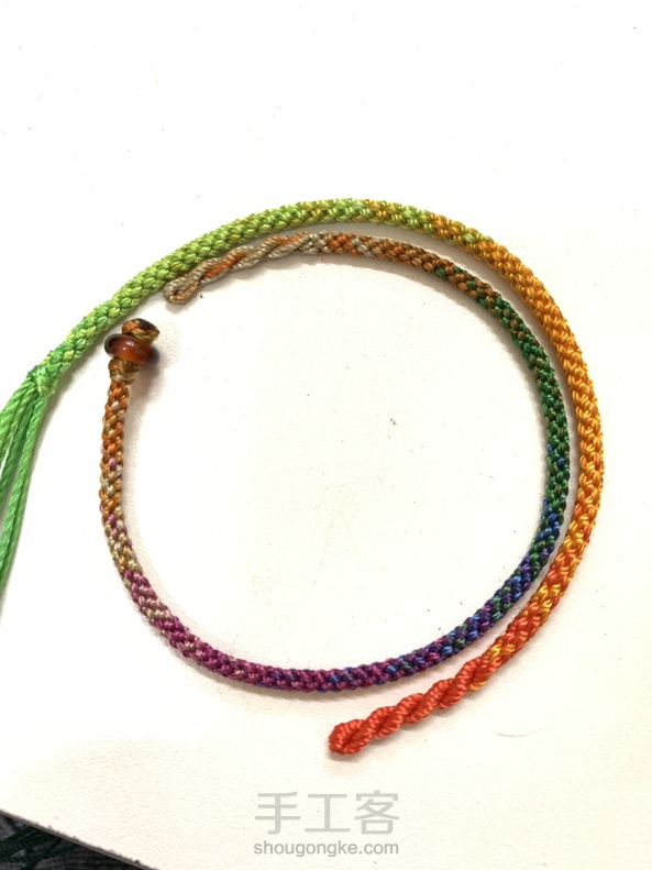 等扣头,没事又调整了颜色,顺眼多了,先编了粗的那根,郁闷的编一半线乱了,还原不了只好打住😭