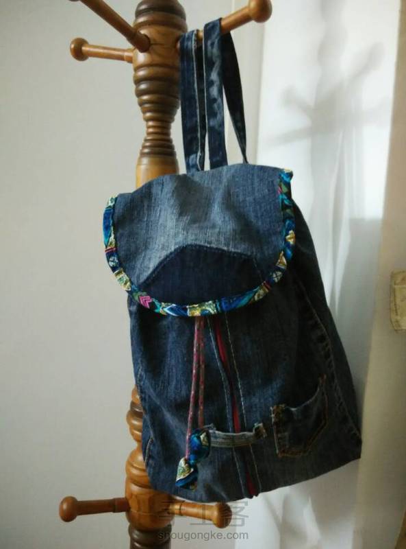 刚刚完工的包包,第一次做这么大的,有点小激动!偷偷告诉你们,这是用旧牛仔裤做的,上身效果不错哟!