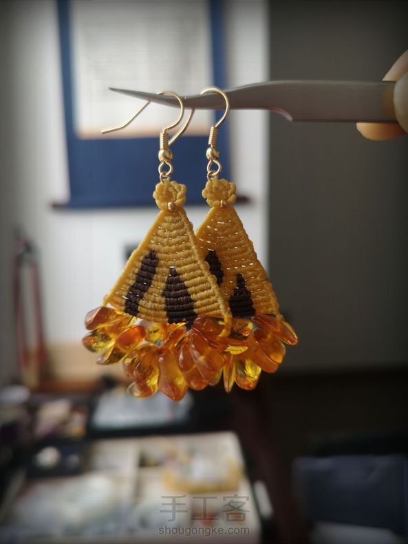 一堆漂亮的琥珀珠子 都舍不得用 想了一个最简单的款式 依然是我最喜欢的耳饰 果然,很是惊艳!👍😄