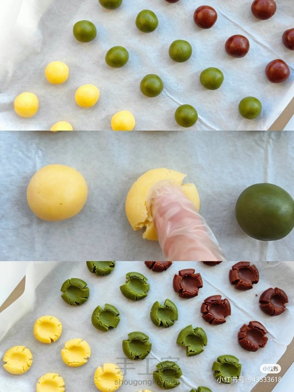 烘焙新手入门|一看就会零失败玛格丽特家里的小朋友灰常喜欢玛格丽特,今天一-次做.了三个口味的,酥酥脆脆,好看又好吃,快来get!! 食材 原味: 熟蛋黄一个|黄油50克|糖粉30克| 食盐1克|低筋面粉50克|玉 米淀粉50克 V抹茶味: 熟蛋黄一个|黄油50克|糖粉30克| 食盐1克|低筋面粉50克|玉米 淀粉45克|抹茶粉5克|V可可味: 熟蛋黄一个|黄油50克|糖粉30克| 食盐1克 |低筋面粉50克|玉米 淀粉40克|可可粉10克 做法: 鸡蛋煮熟,晾凉取出蛋黄备用! 黄油室温软化好,加入糖粉,食盐,打发至微微发白。 3熟蛋黄用筛子过滤到黄油中,翻拌均匀! 4低筋面粉,玉米淀粉混合均匀,筛入黄油糊! 5用刮刀混合均匀,带上手套,揉成面团!(抹茶,可可口味也是这个做法) 6分成8克一个的小剂子,揉圆,用手指压扁,会出现自然的裂纹! 烤箱上下火150度,烤20分钟! 秘秘秘 鸡蛋一定提前煮好,晾凉取出! 黄油提前室温软化! 烤箱我用的德国DETBOM烤箱,每个牌子烤箱脾气不同,要注意根据自己情况调节温度哦! 这款烤箱还有空气炸锅和发酵功能,可以给娃做很多好吃的呐!以后慢慢解锁! !hahahaha~~~ 本图文源自小红书:Moore#detbom烤箱#
