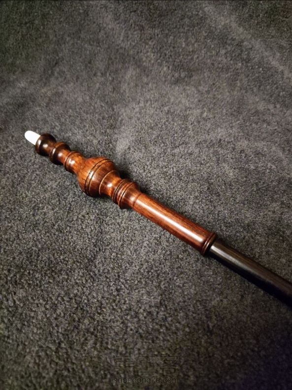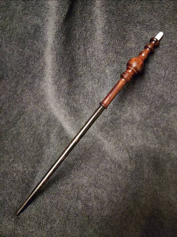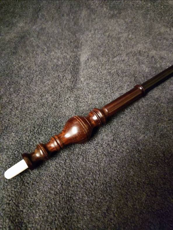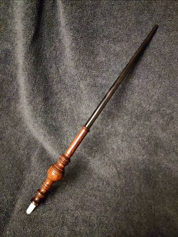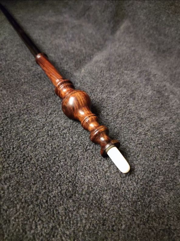 仿制米勒娃 麦格教授的魔杖。 长14又二分之一英寸,红酸枝手柄,紫光檀杖身,牛骨尾尖,手柄中空,尾尖拿下来可以填入杖芯。 谁不想试试“石墩墩雄起”咒呢[坏笑]。