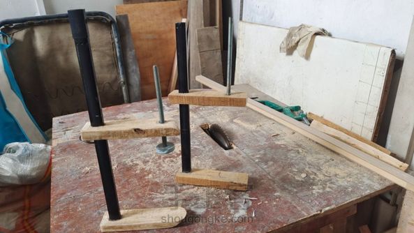 坏拉杆箱拉杆和废木条改造成的F夹