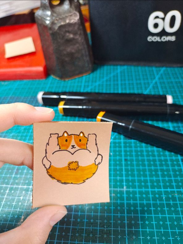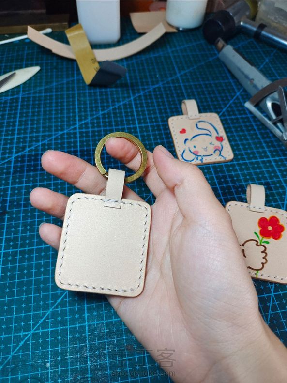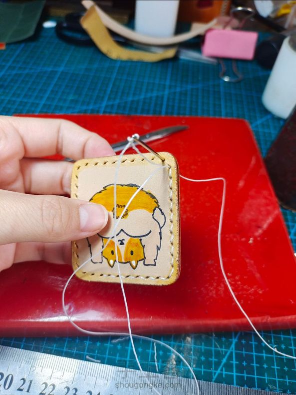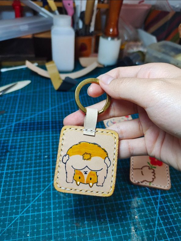牛皮手绘可爱的柴犬钥匙扣挂件