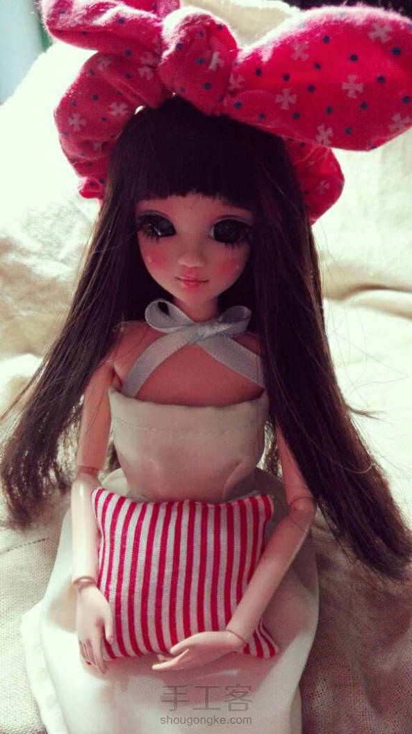 和小裁缝换的娃美哭太喜欢啦!!!拍的照片不及实物的美貌!!!还送了小抱枕和白衬衫和贝壳手链 把饭饭送的兔耳朵戴在头上萌萌哒滚来滚去……~(~o ̄▽ ̄)~o 。。。滚来滚去……o~(_△_o~) ~。。。