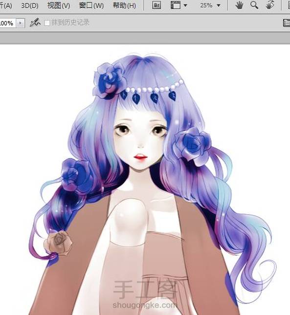 黑白稿往彩色稿转变= ̄ω ̄=觉得紫蓝色头发还不错(๑•ั็ω•็ั๑)