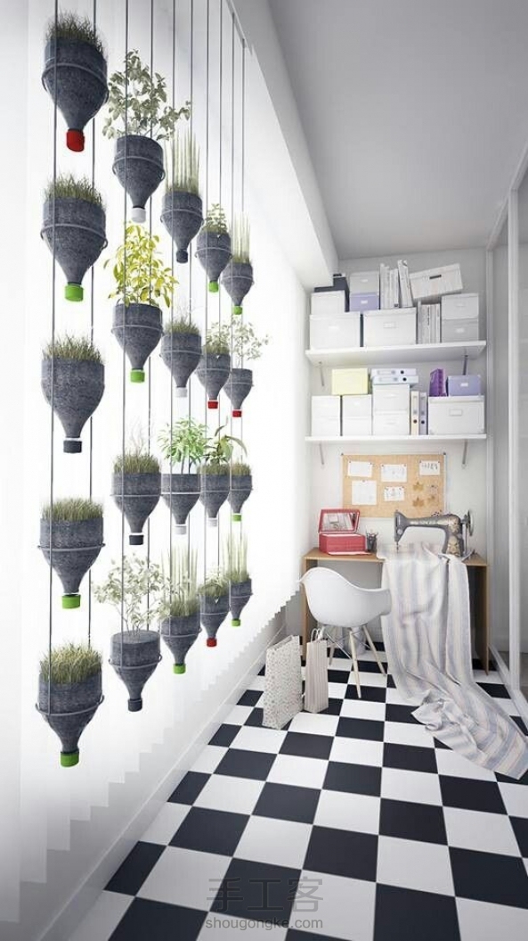 旧饮料瓶不要扔。为单调的窗添抹绿