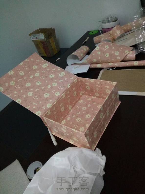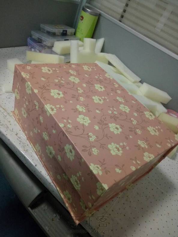 做了个盒子,材料是硬纸板墙纸和海绵😁😁
