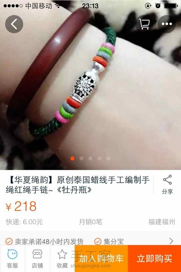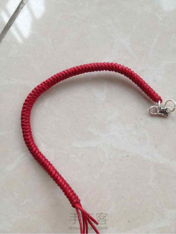 慧馨手作:银饰孔够大就直接串进去.串不进去就编到一半串进去再编.结尾减去两根.另两根穿过圈编两三个金刚结.就可以了