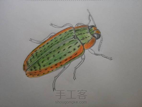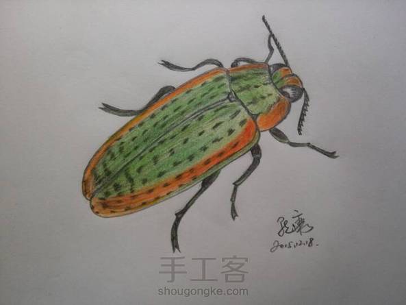 刚刚画好的,这个线条比较简单,15分钟画好底稿,涂色还是比较慢的,最关键是绿色与橘红色的过渡,彩铅颜色不是要的那种感觉,后期再添质量好的彩铅,颜色也要再丰富些。拍照后效果有色差!