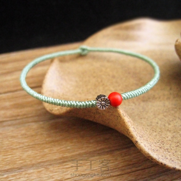 冬日里 来点嫩嫩的颜色吧 玉绿色2MM金刚结手绳 4MM的朱砂和4MM的泰银小花