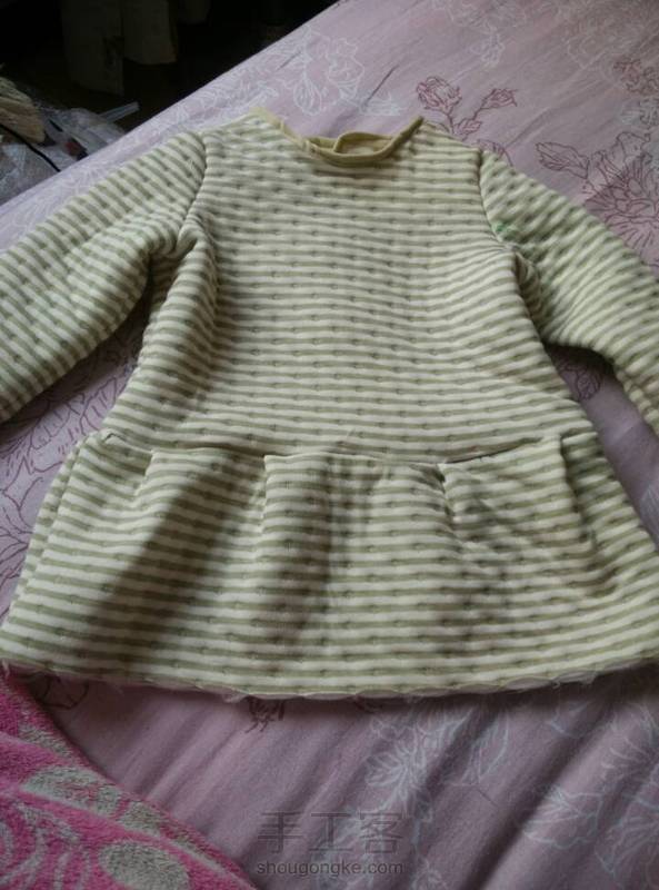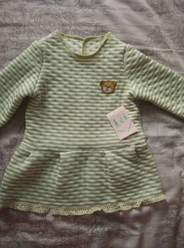 又做了一件小衣服,自认为还满好看,这次加了装饰。我女儿都会夸衣服漂亮了!