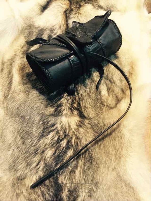 工具性包,化妆师用的刷套,整张小鳄鱼皮,皮绳编织固定,表达了化妆师张扬的个性