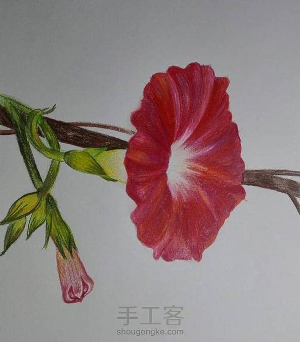 彩铅作品《喇叭花》