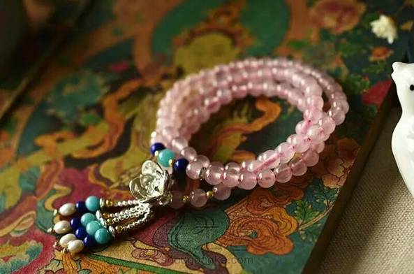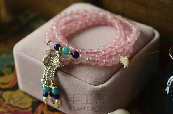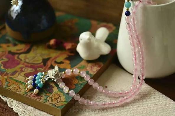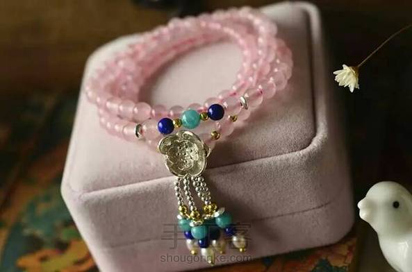 或许爱的最高境界就是经得起平淡的流年,不论变换了季节,守候粉色的诺言…… 粉晶,爱情的守候者,搭配珍珠青金,色彩明快,纯银花朵摇曳生姿,美美哒……