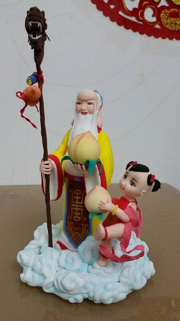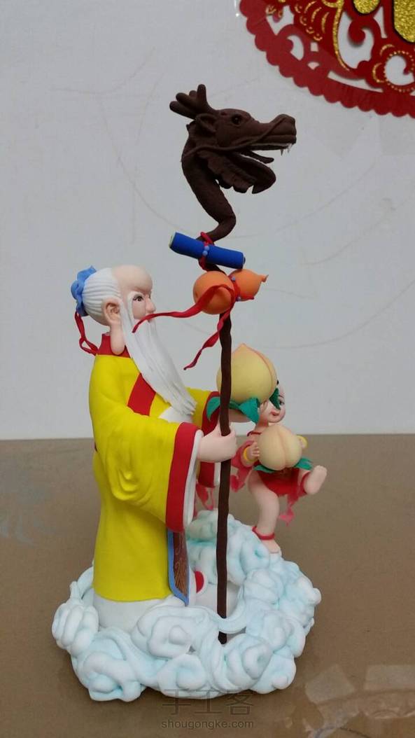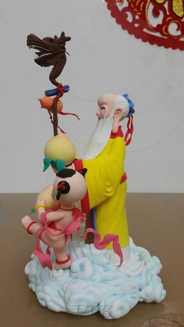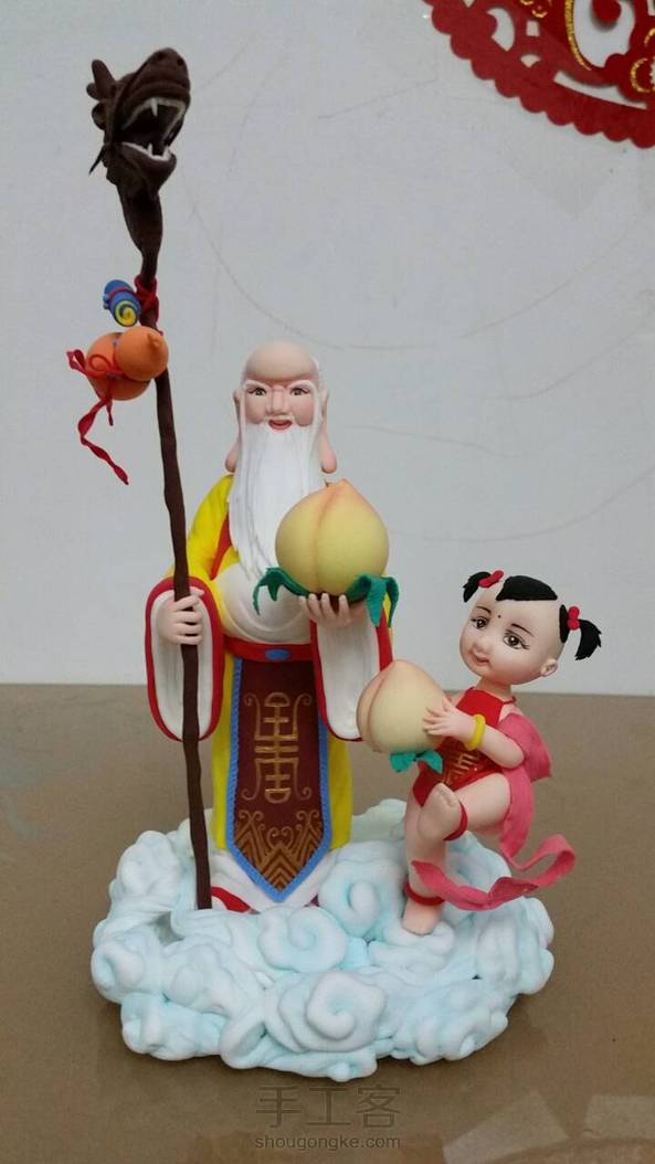 超轻粘土做的寿星公和小童子