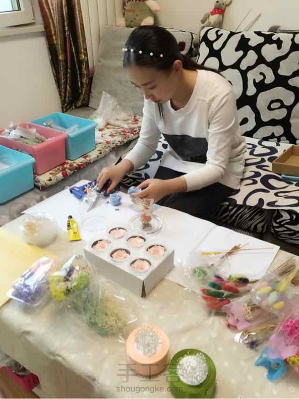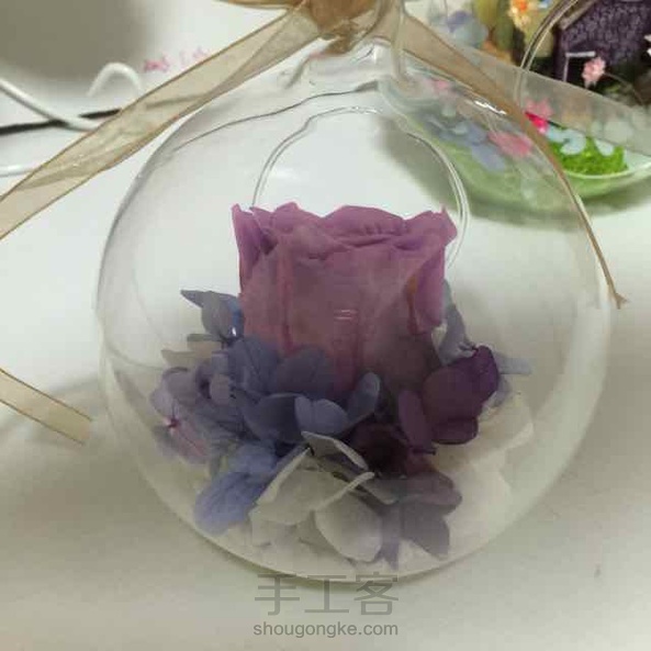 这是近期做的“一枝独秀”,已经送给姐姐了。这种紫色很特殊,不好搭配,所以让它独自绽放吧。附上两张工作照,嘻嘻。