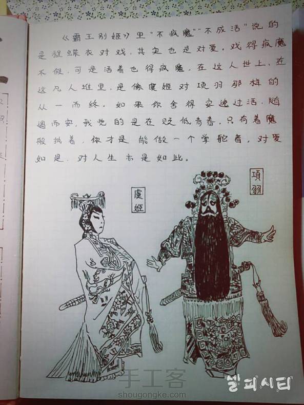 昨天看了哥哥(张国荣)的霸王别姬,真的好经典,而且好久没有写手帐啦,结果就画了一篇