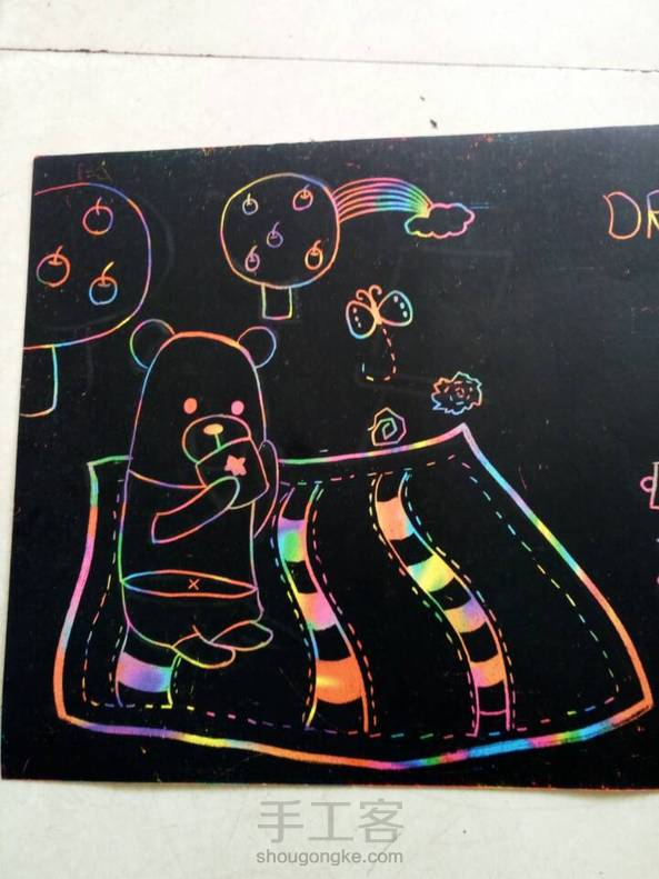 《做完了,反面剩了好多的线,就为了增加作品的质感,反面就随便发挥了一下,我用的是0.5的圆蜡。》