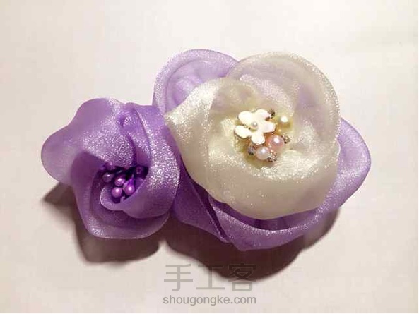 《很漂亮,感谢老师分享的教程,刚开始线选错了用的扁蜡线,导致花瓣上面有很多小孔,之后补救了一下串了一些珠子,成品很喜欢。》