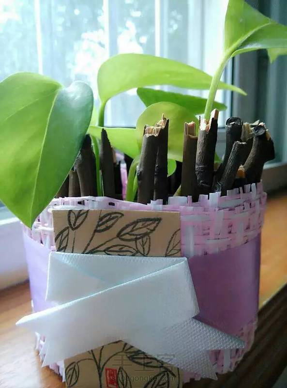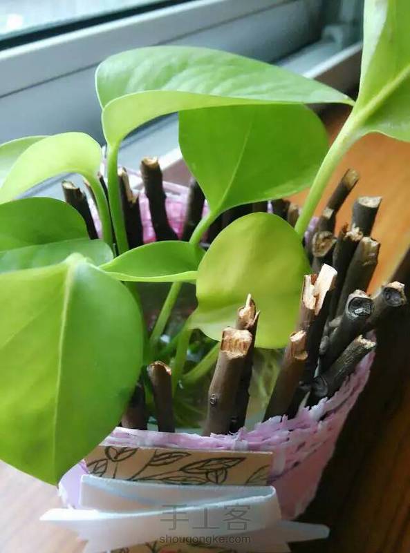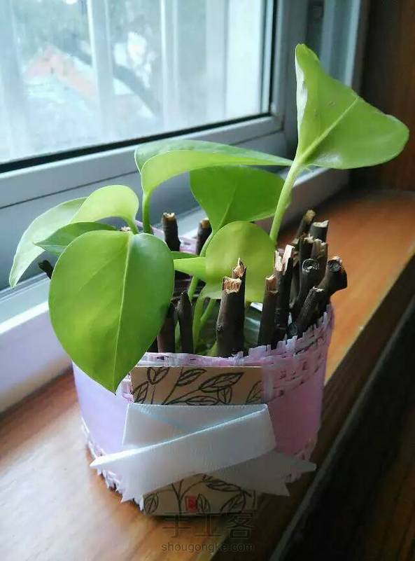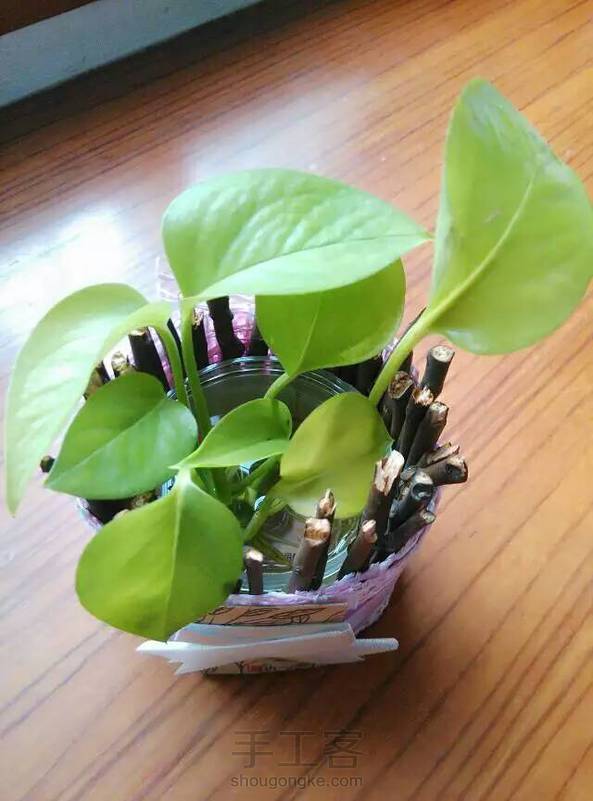 旧物改造,做的小花器,养两株绿萝