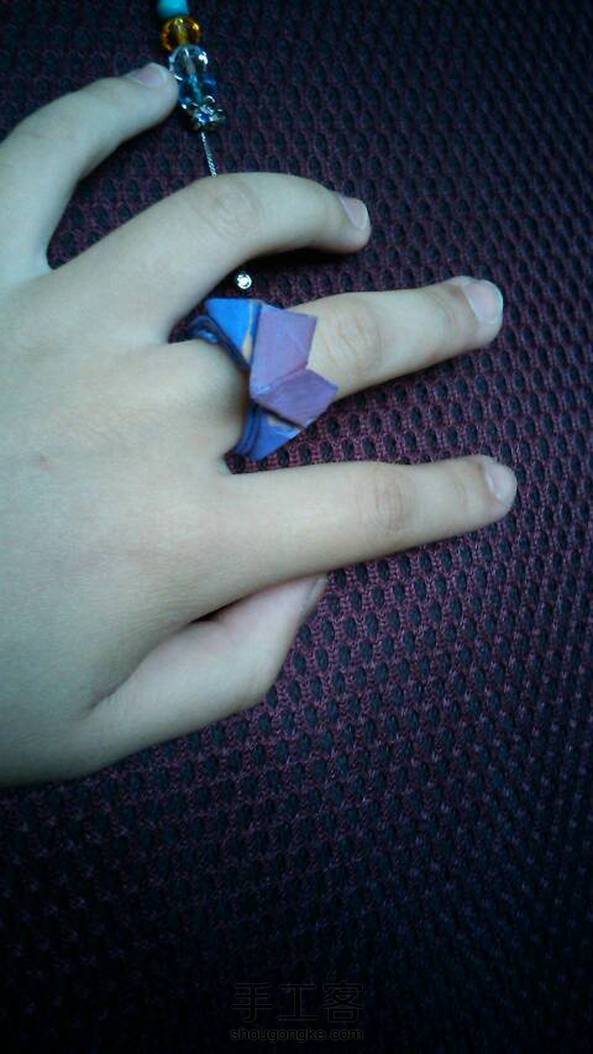 第一次用纸叠的戒指,(呵呵,有些丑)叠好好后加了点颜色((¬、¬)本想涂点紫蓝色,没想到干了后变成了这样……)不过,我对自己还是蛮有信心的。