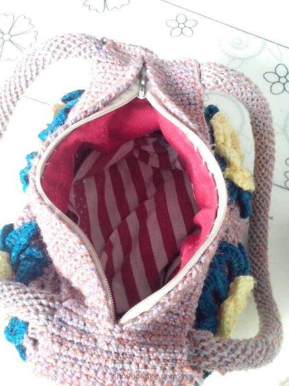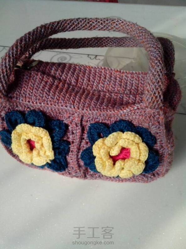 应老妈的要求,把她的作品也拿出来晒晒!妈妈的作品一,旧毛线钩织手包