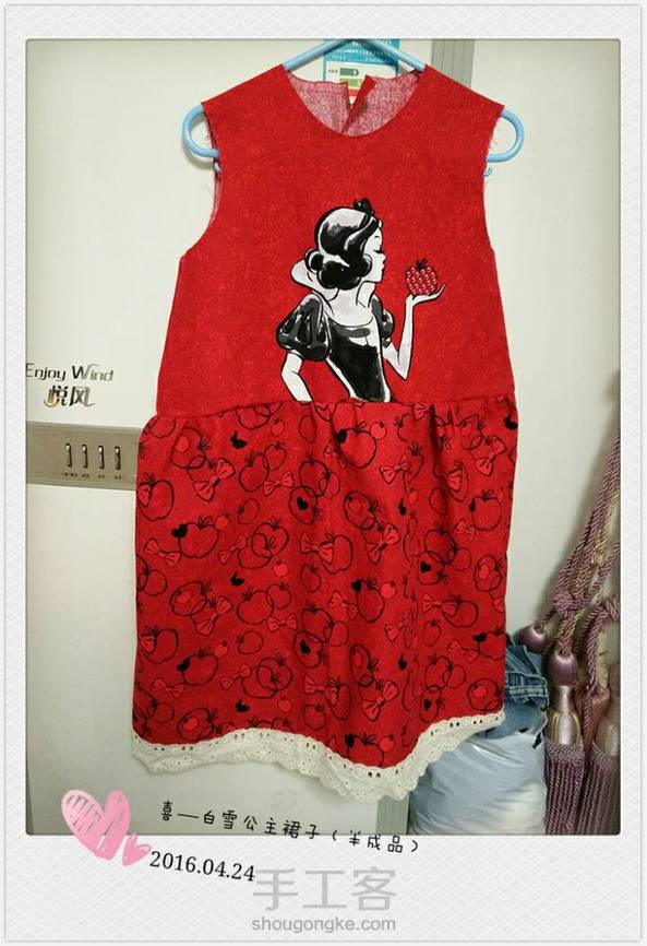 昨晚嘉宝睡觉的时候做的做大了,上衣部分忘了修改结果好奇怪(画图纸的时候是想做上小下大一体的裙子的😅)。