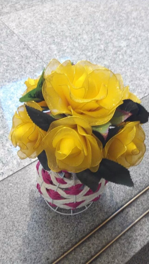 《谢谢老师分享的教程🌹彩金线编的花托》