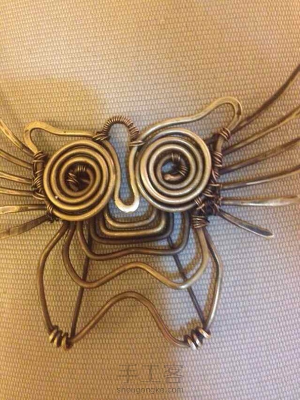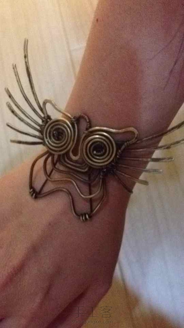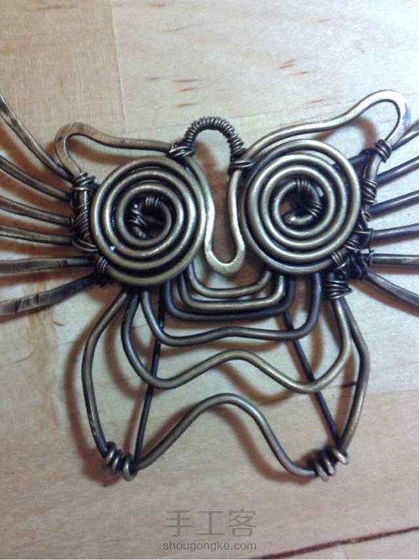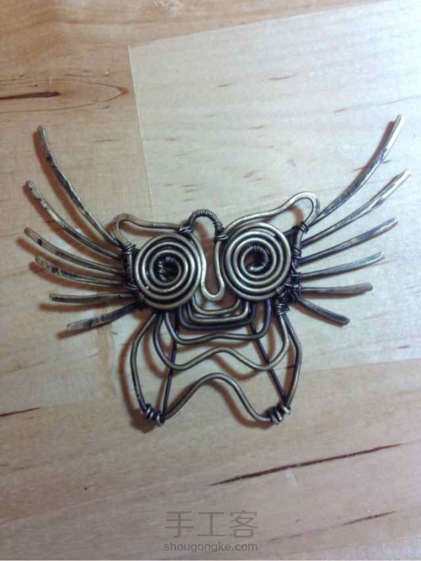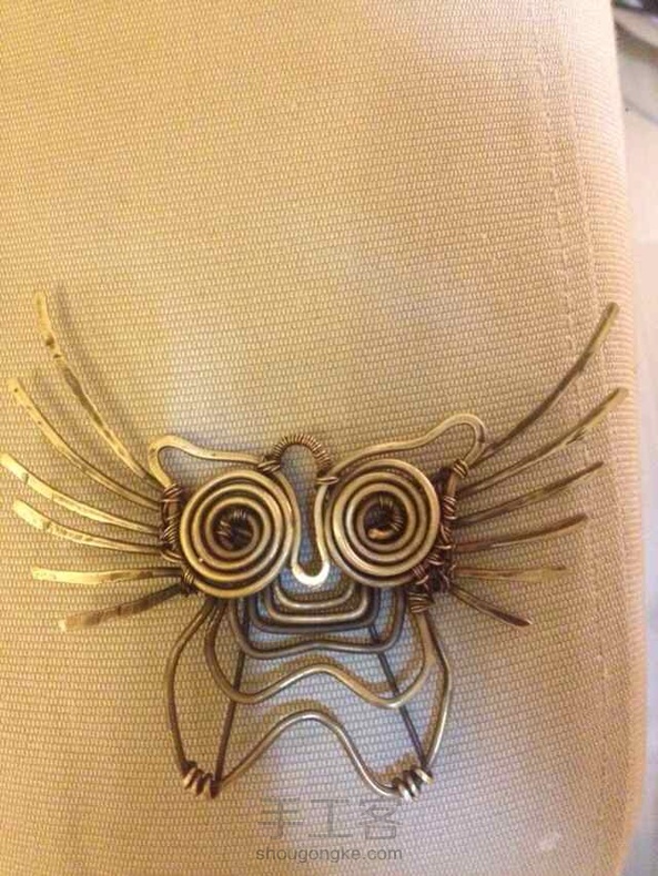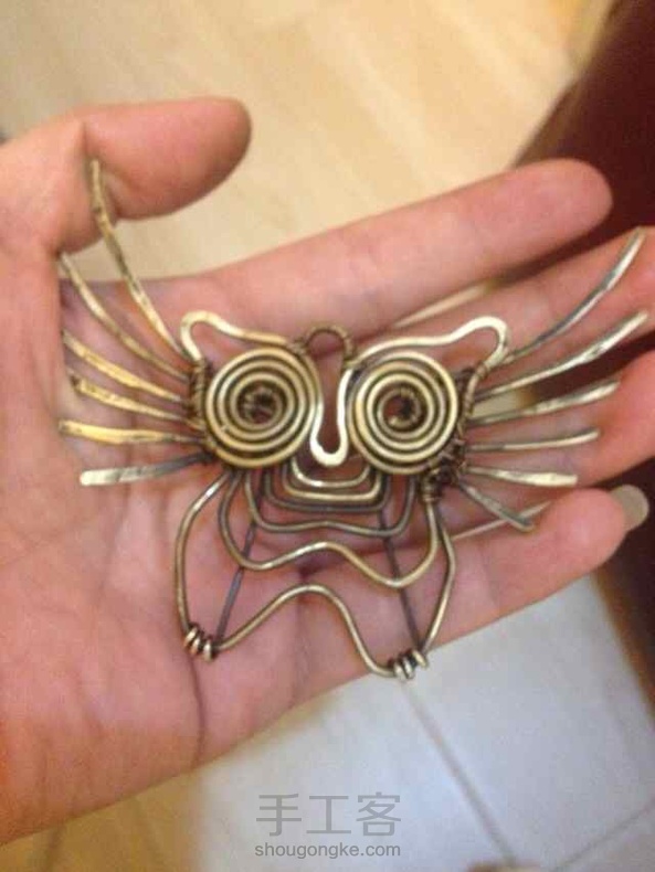 练手,1.5黄铜线,自己做旧后,仿俄罗斯妞的,原作太萌,故将身体部分拉长,想穿成个皮手环。目前木有皮子,暂时撂荒。