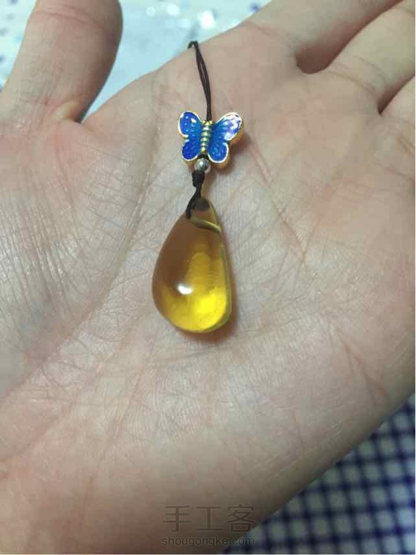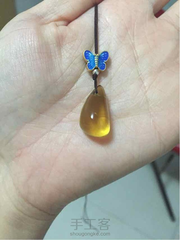 金珀随形吊坠配景泰烧蓝小蝴蝶😊