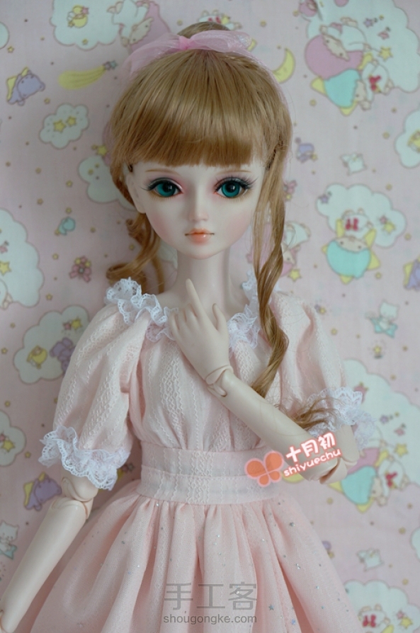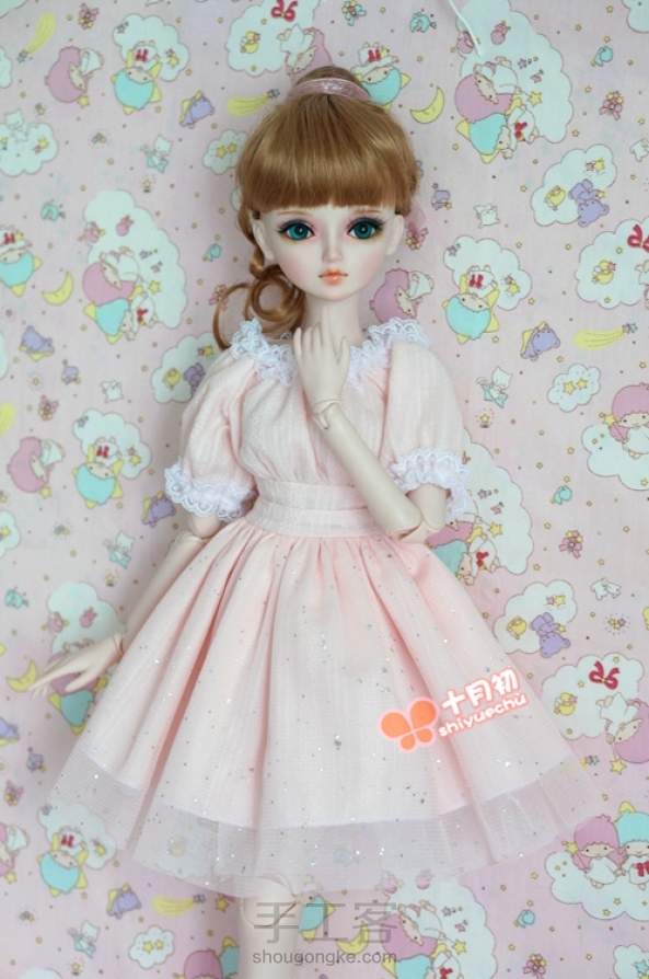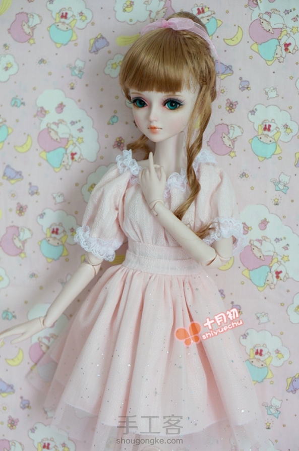 #夜萝莉#十月初手作:粉公主亮片星星纱连衣裙 柔软的网纱,粉色纯棉提花布料,收腰的设计 。 显得乖巧可爱。 领口和袖口打褶的蕾丝花边 更是平添了一份轻盈灵动。
