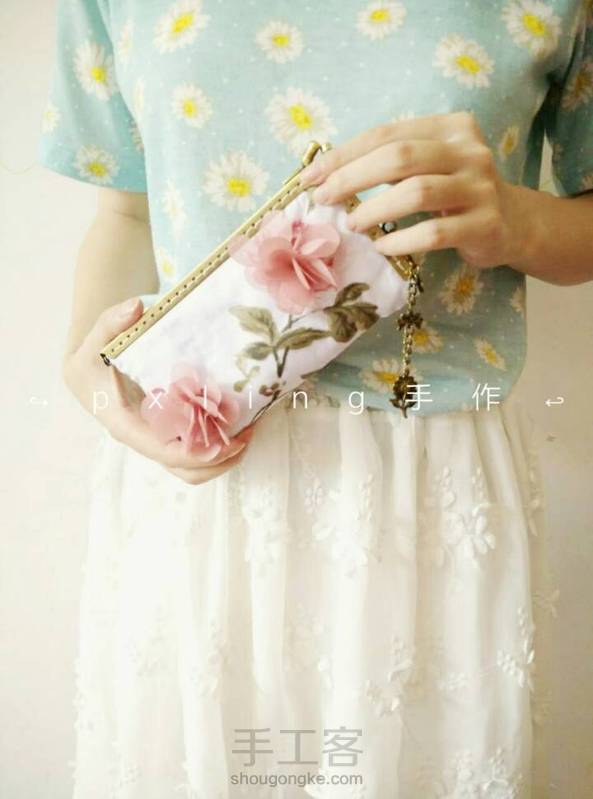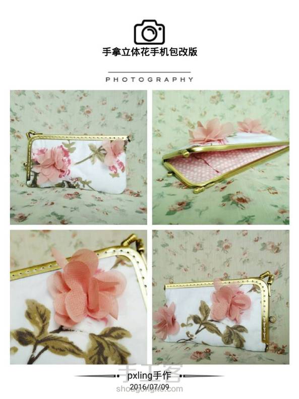 [纯手工]立体花系列 手拿立体花手机包改版,会更加的柔软~o~ 可放五英寸手机,有内袋,尺寸:长16cm/宽9cm(有需可私聊,可定制)