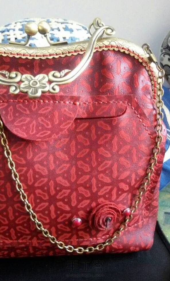 很喜欢口金包,但真心费针啊,是原来的版型我给拉长了些,前后的装饰是随心加的。更喜欢印花皮。20厘米的口金。