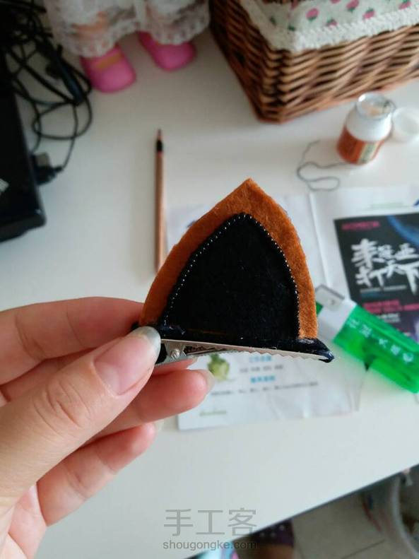 给闺女做了猫耳朵发卡,喵,萌萌哒。
