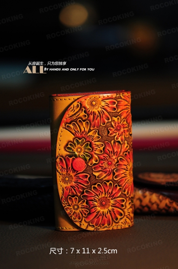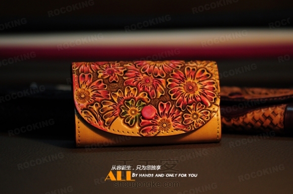 杭州浮革钥匙包定制进行时-花款钥匙包是杭州浮革设计的花款系列的中七个作品之一的作品,它是一款女士用的钥匙包。
