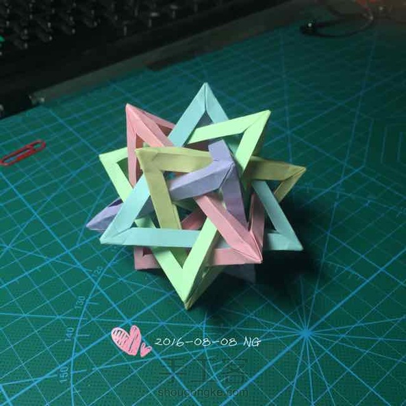 好困好累,空间立体感不强,整起来太费劲,起初还用胶固定了两个四面体的角,后面也懒得固定,胶粘过的角都不忍直视,就酱紫吧,纸小也有原因。刚又发现了萌物,希望明天能折出来。 晚安喽~
