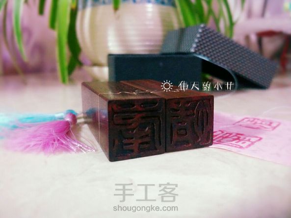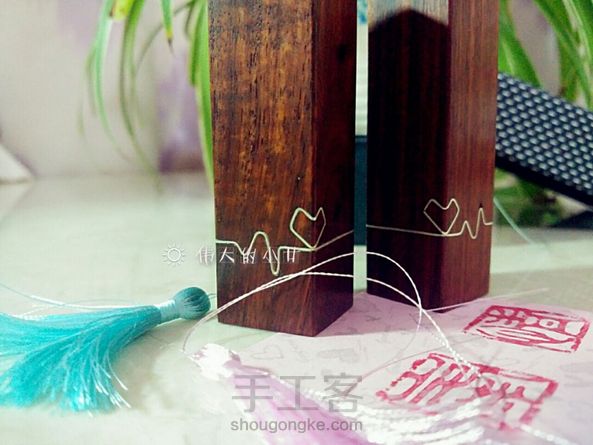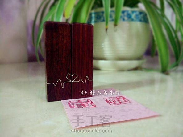 #檀木对章【心跳】#一位大学的舍友和她的男票就要结束多年的恋爱长跑步入婚姻殿堂了💑。亲手做一对专属他们的印章送给他们,以表达我深深的祝福。👏