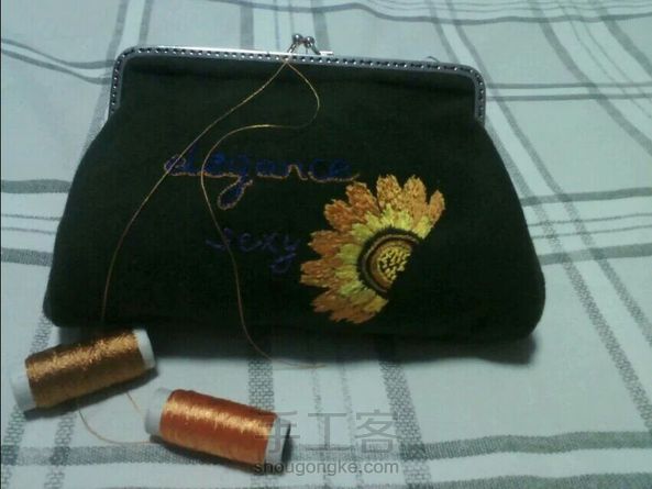 很久以前做的,大莲花的颜色配的不太好。加了个口金包。送人了就留了相片。