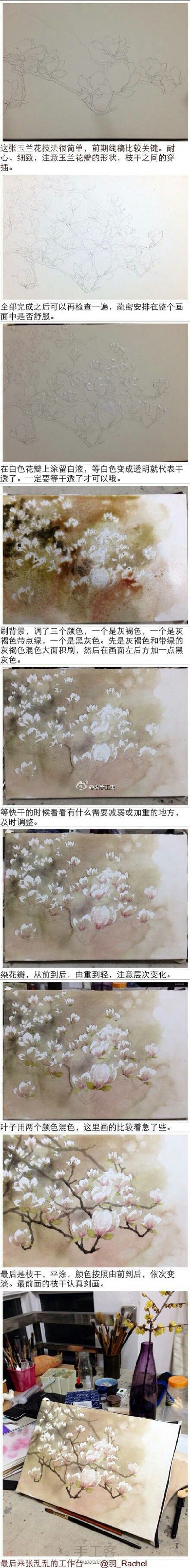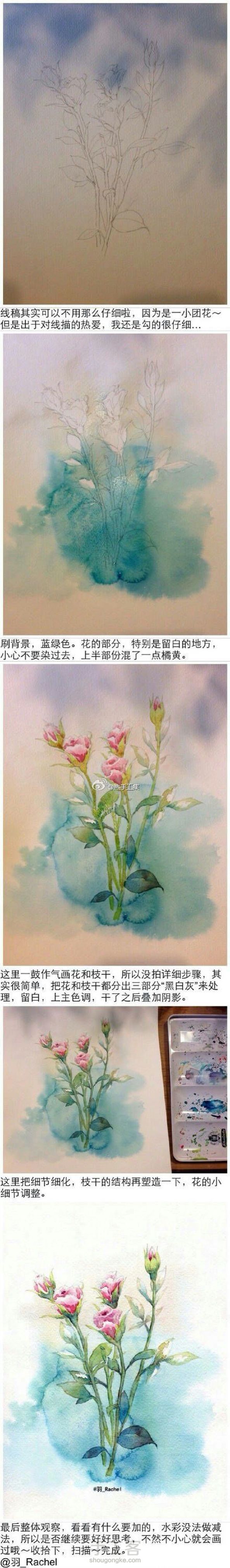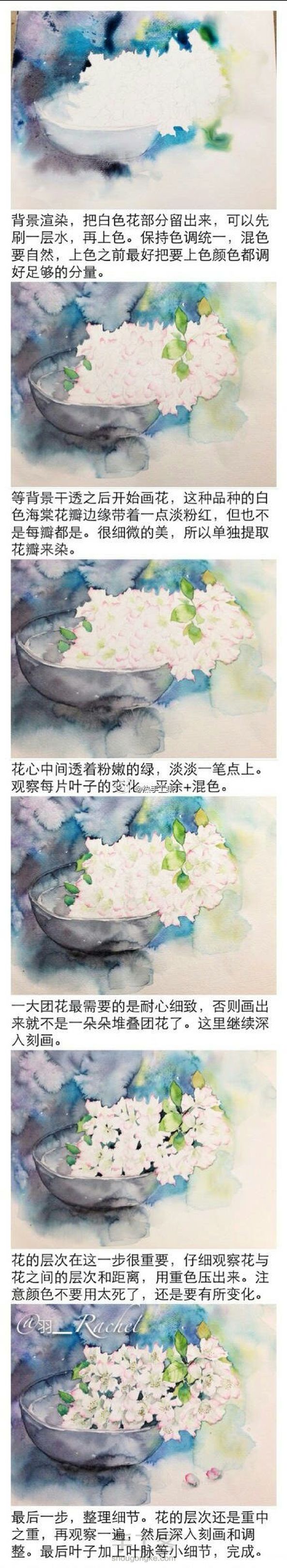 特别漂亮的花卉水彩教程,作者见标注。