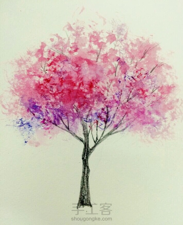 水彩:一棵开花的树 每一棵树都会说话。它说给大地听。说给昆虫听。说给露珠听。说给小鸟听。说给阳光听。沙沙,沙沙。。。