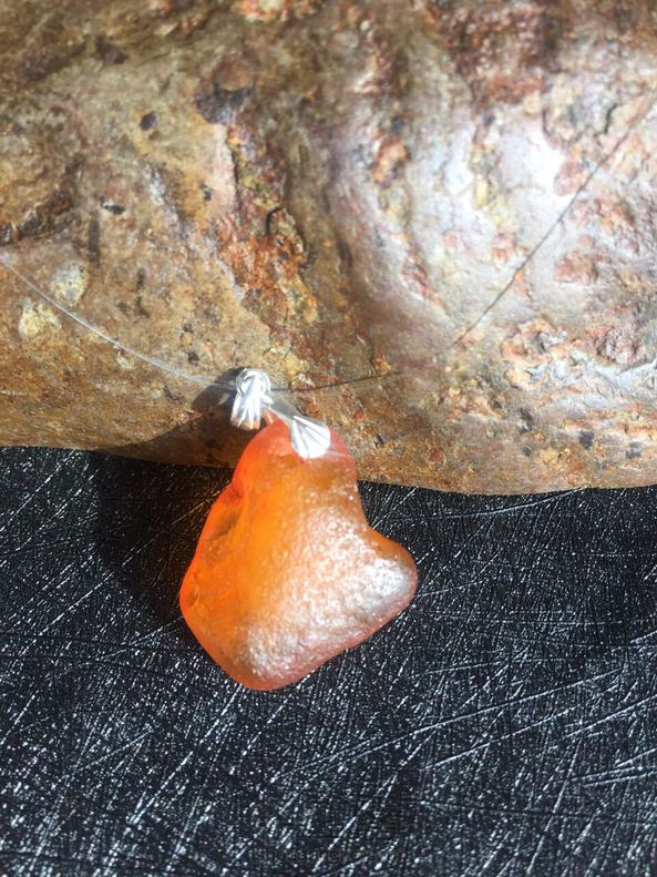 补图:原创隐形锁骨链2⃣️号:拉脱维亚海漂,小全皮,天然无优化琥珀,无杂无裂,颜色棒极了🌟手搓生香。净重2.4克,隐形链配925纯银配件,回去就直接美起来!🎉看不到链子,只见一颗琥珀在颈间灵动🎉🎉🎉两面均可佩戴。了解拉脱维亚海漂,见朋友圈信息[微笑]