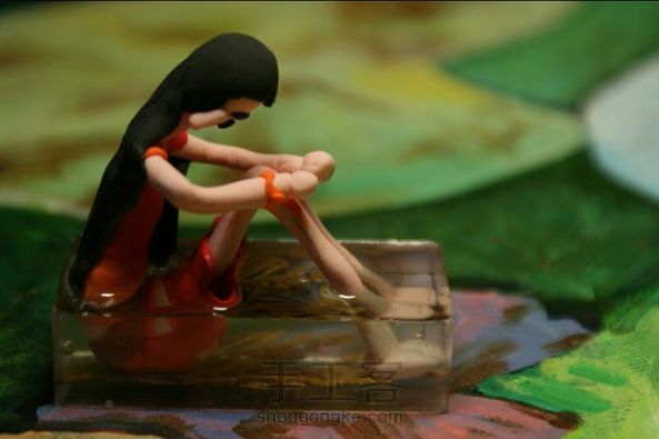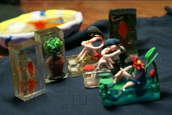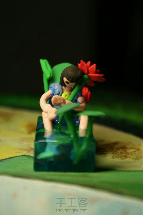 忧郁的孩子,创意模式有借鉴。滴胶和粘土的碰撞,有意思的小摆件。
