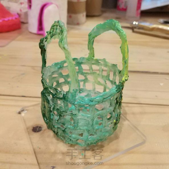 用热熔胶做了个小篮子,成就感满满的。可是不知道发哪个圈子里去